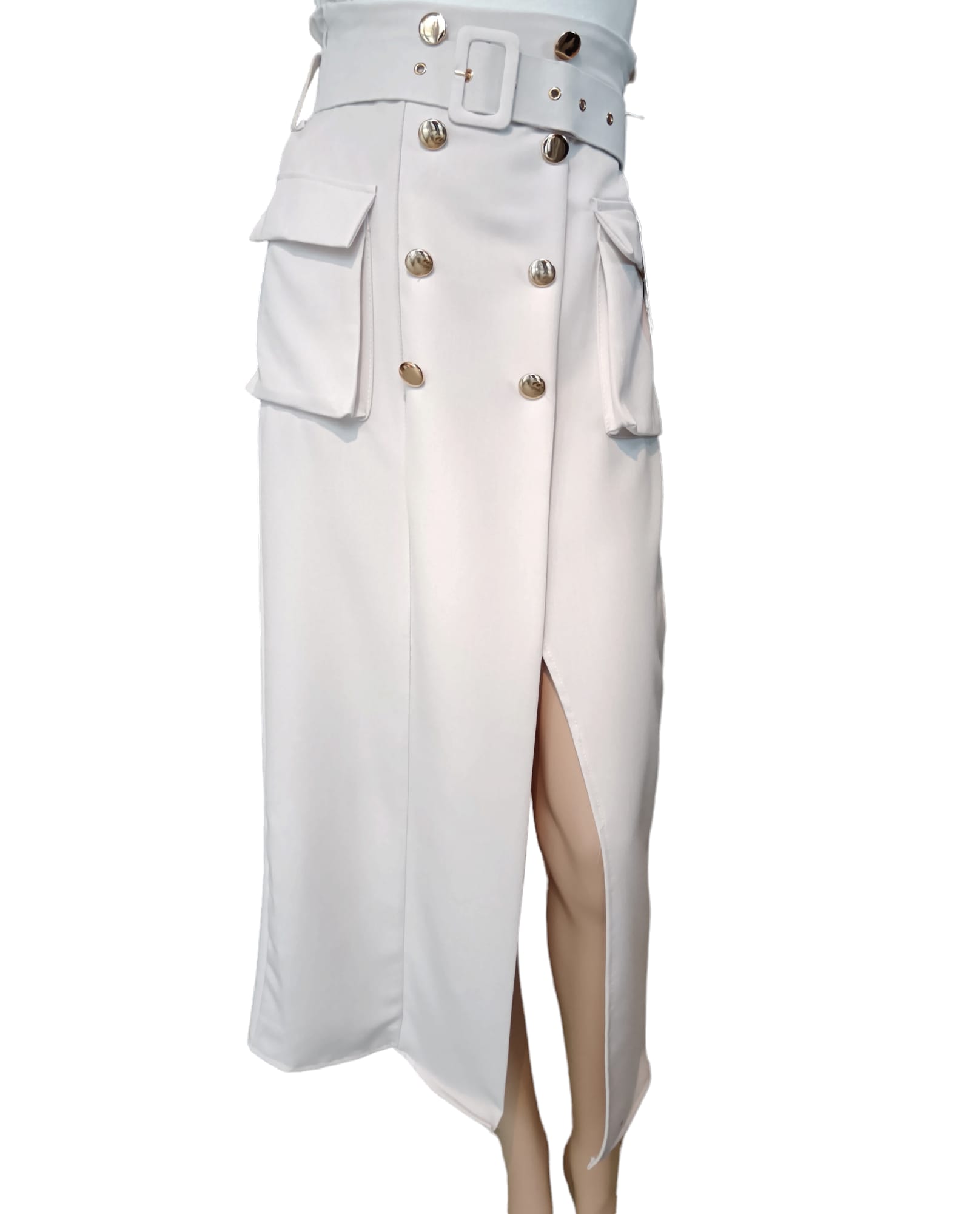 Elasticizzata con cinta e bottoni.