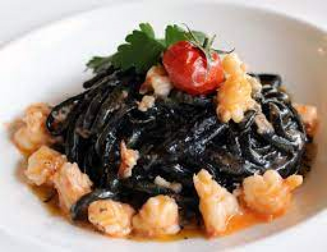 Tagliolini al Nero di Seppia, Gamberi