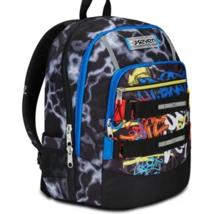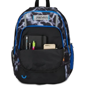 Davanti a te hai una giornata piena di impegni fra la scuola, gli allenamenti e un giro in centro nel tempo libero. E tu per affrontarla hai messo tutto quello che ti serve nel capiente doppio scomparto del tuo nuovo zaino Seven Advanced. Tutto è al proprio posto: libri e quaderni, tablet o PC nell’apposito scomparto interno, la borraccia nella tasca laterale e il cambio da metterti dopo allenamento. Mentre il telefono, gli auricolari e l’agenda sono nella tasca frontale con organizer. E poi sai che spostarti da un posto all’altro è comodo: spallacci e schienale sono confortevoli e il fondo integrato mantiene il carico sempre ben bilanciato.